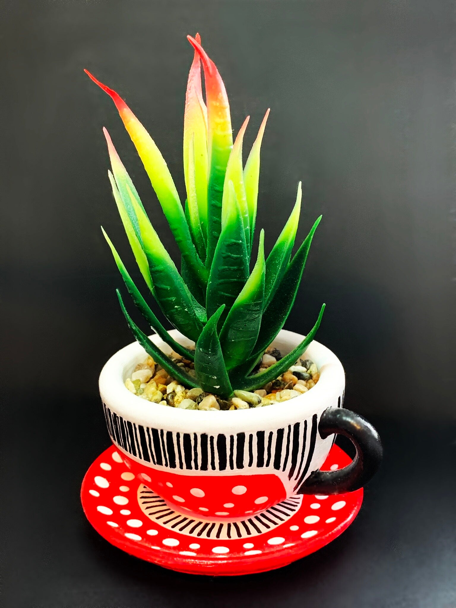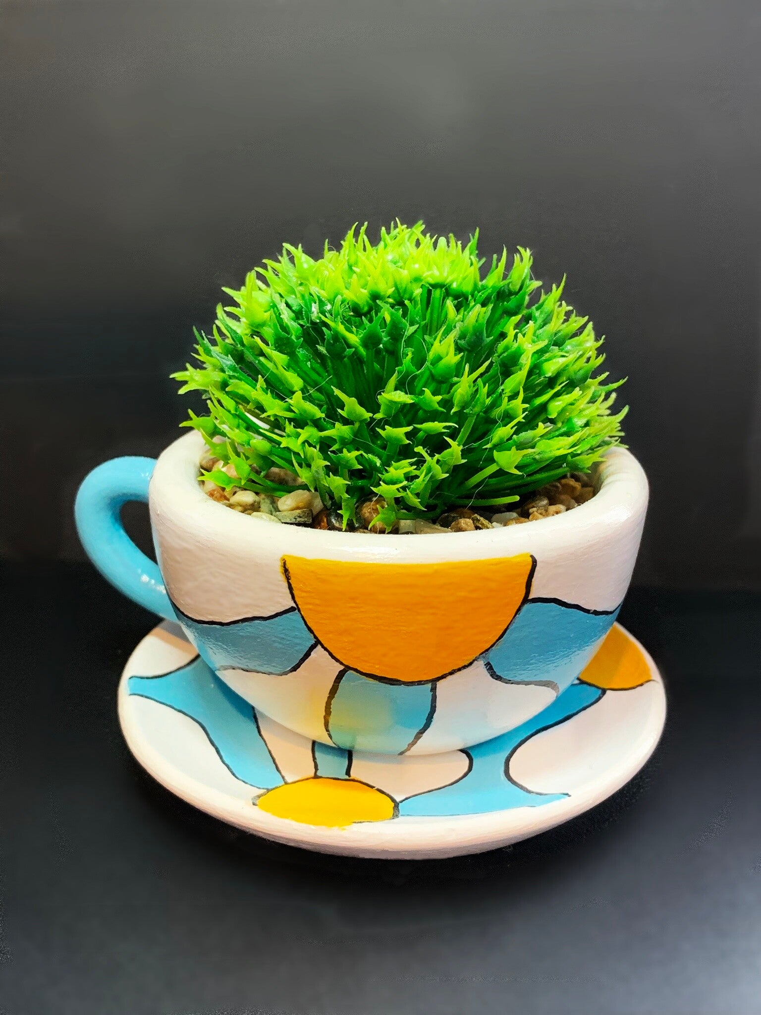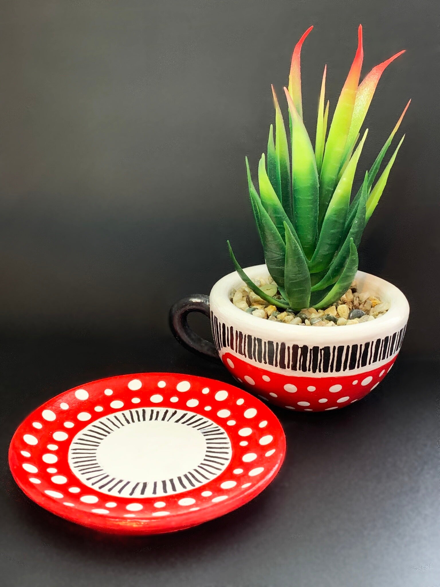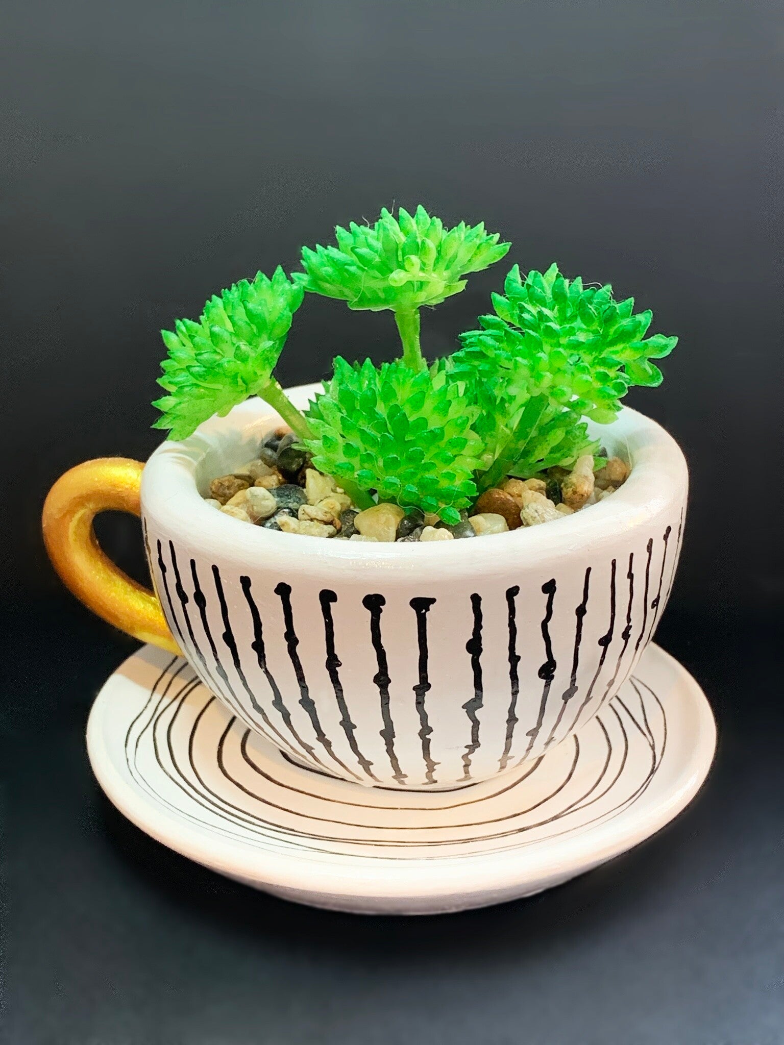 Cup & Saucer with Faux Succulent