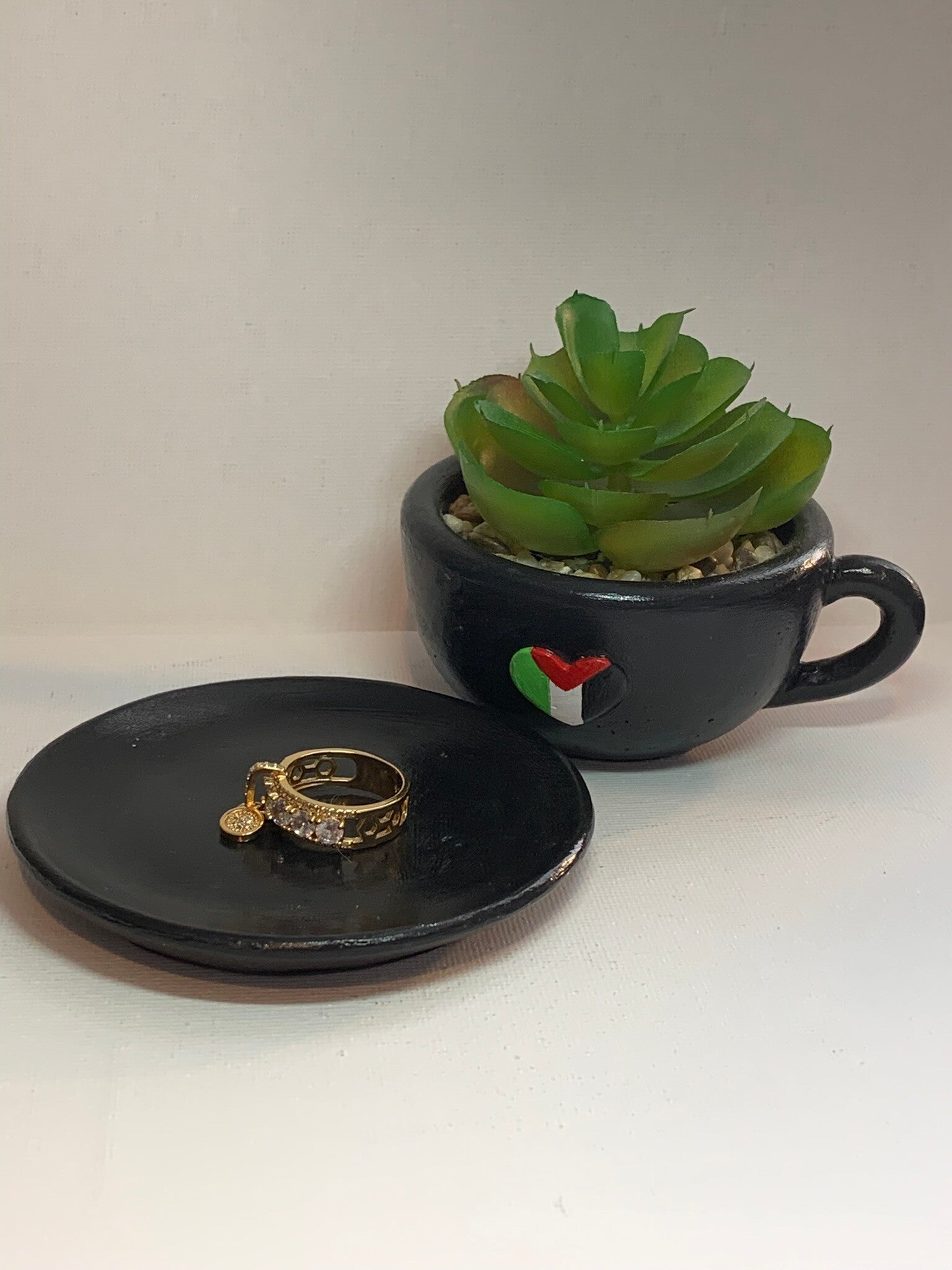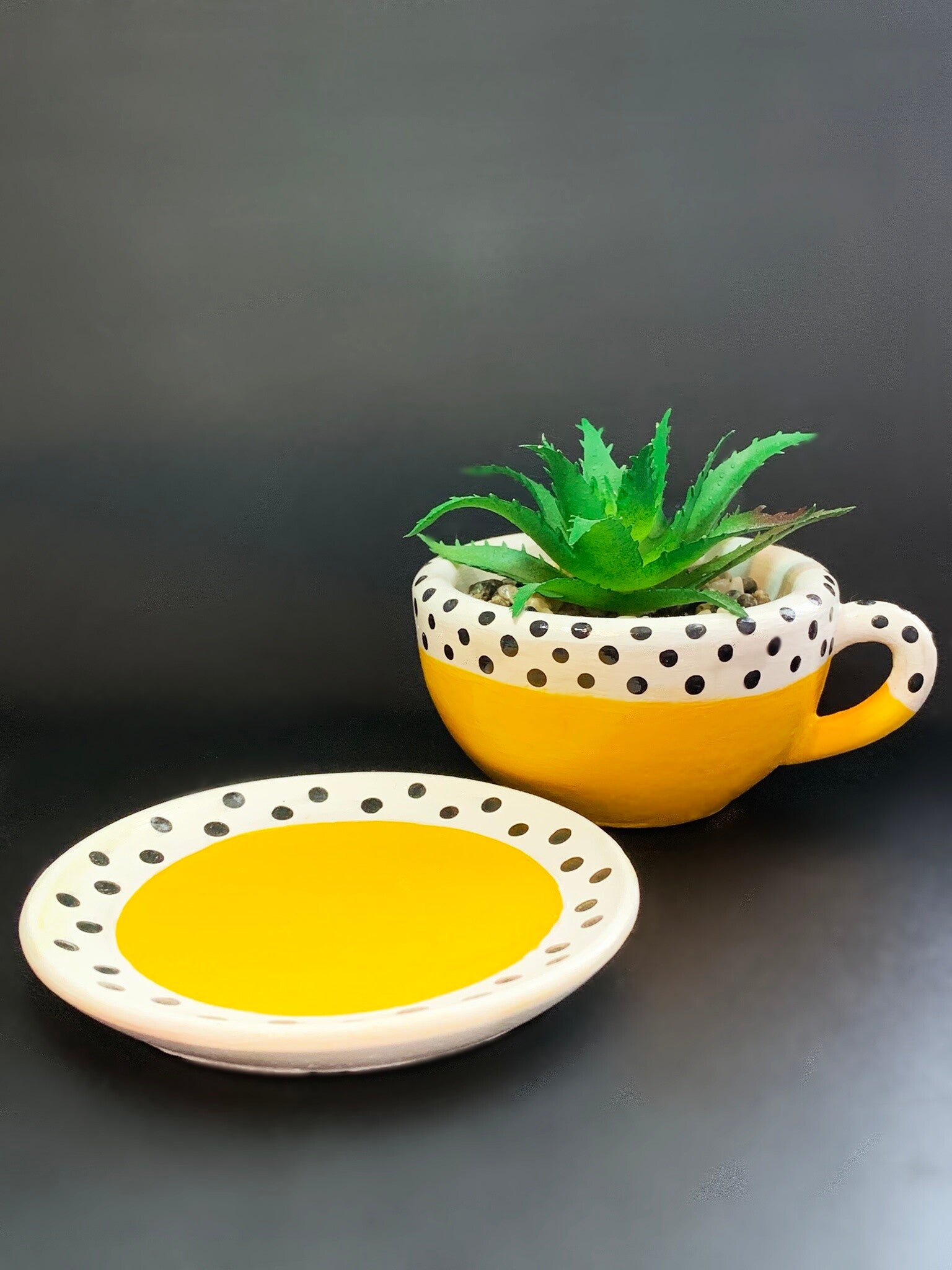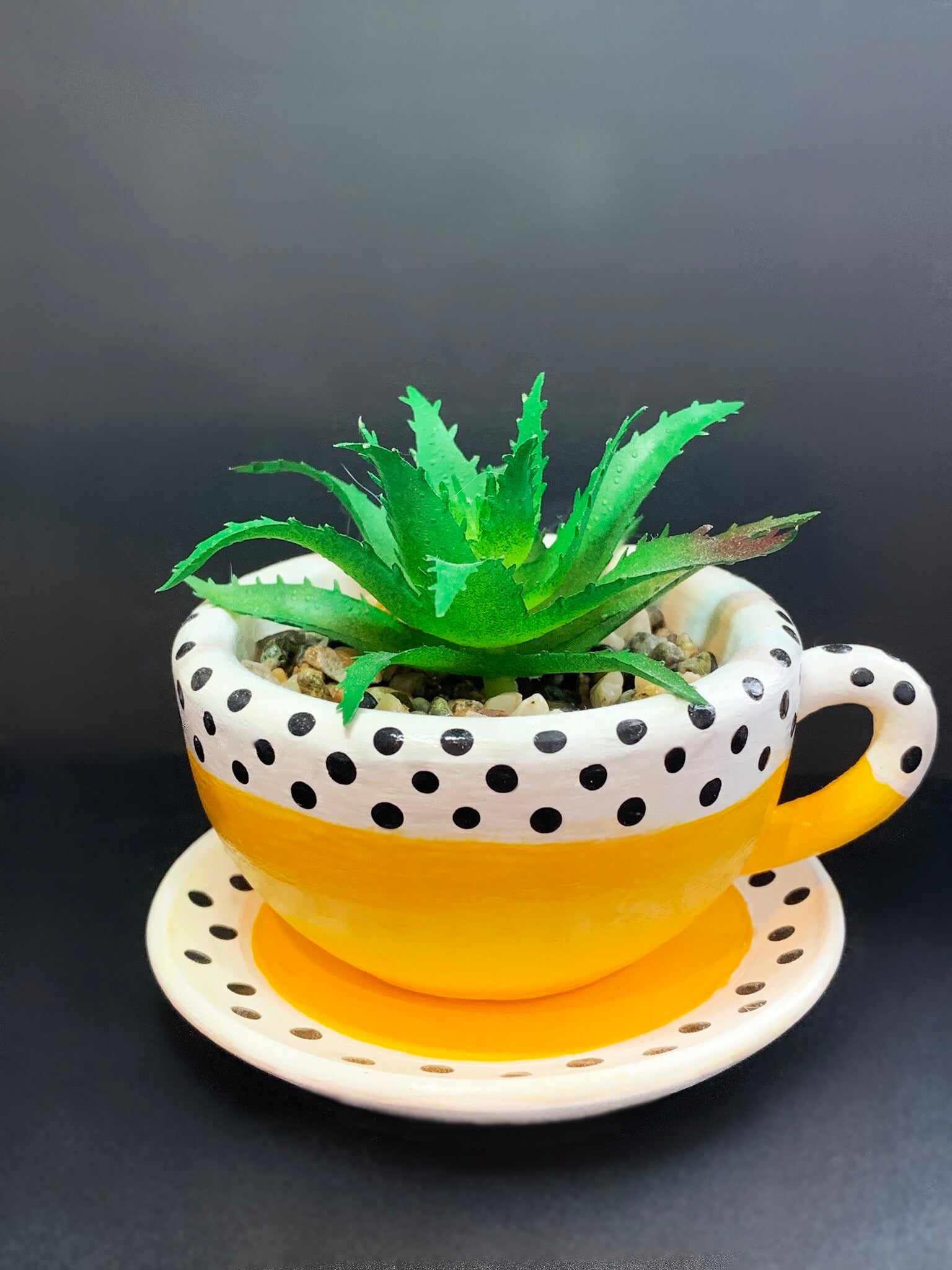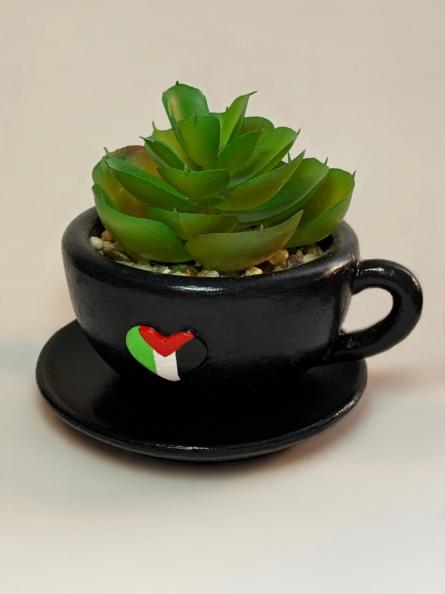 Cup & Saucer with Faux Succulent