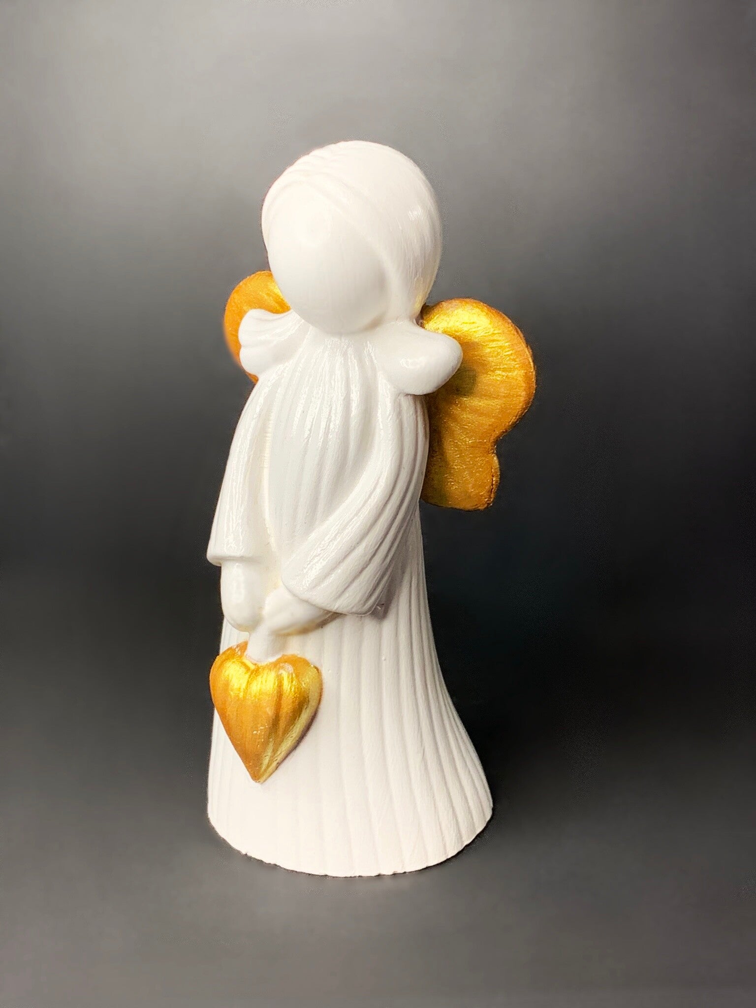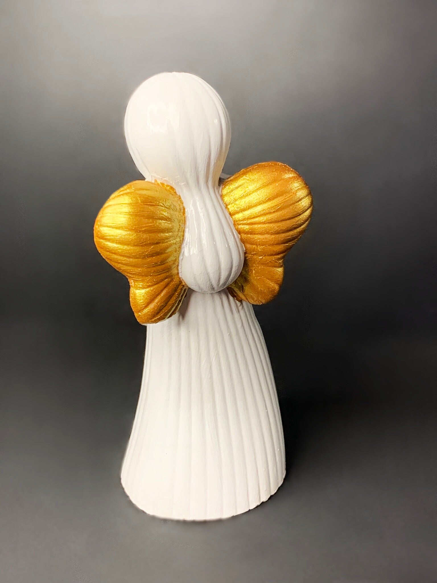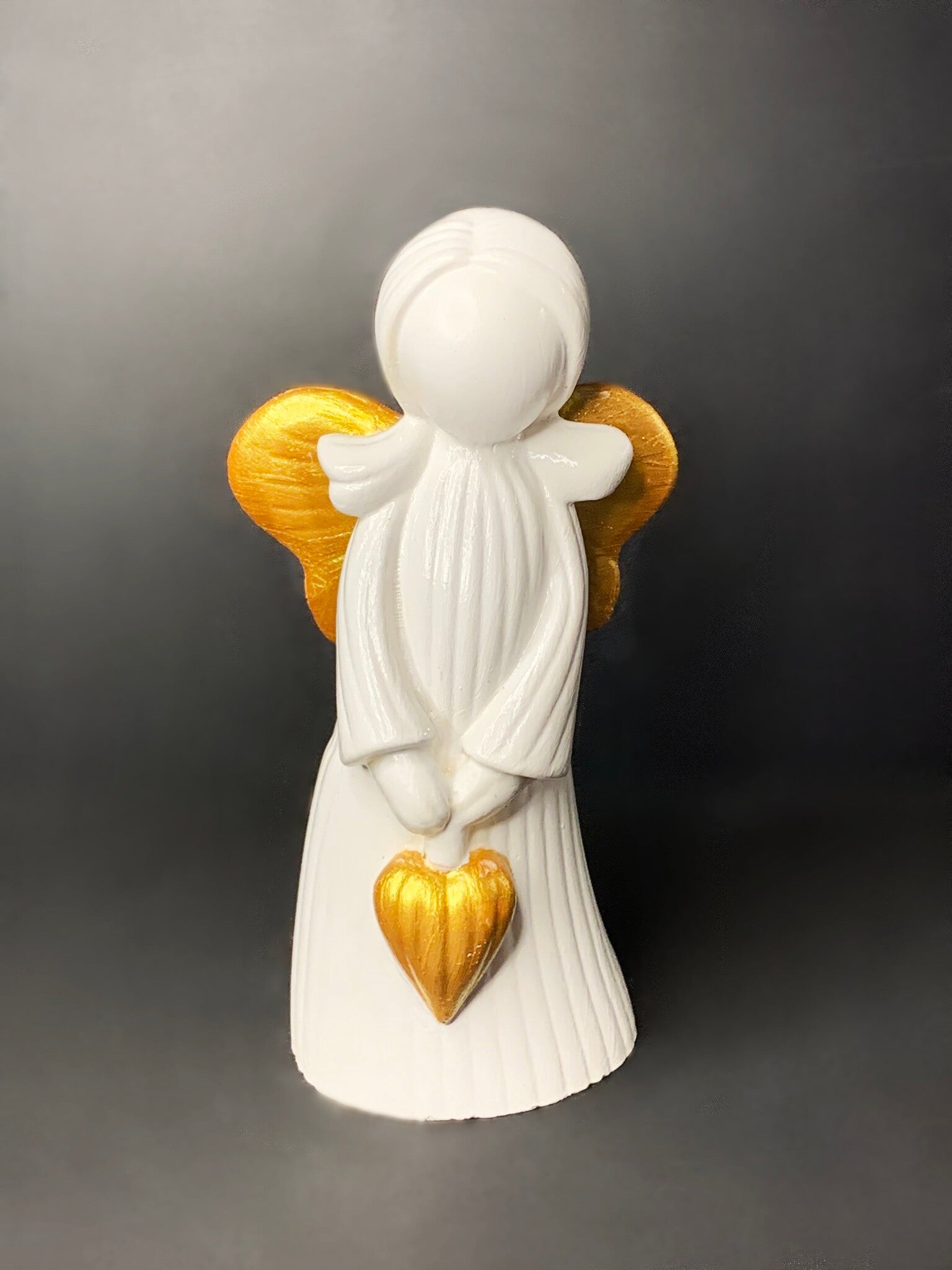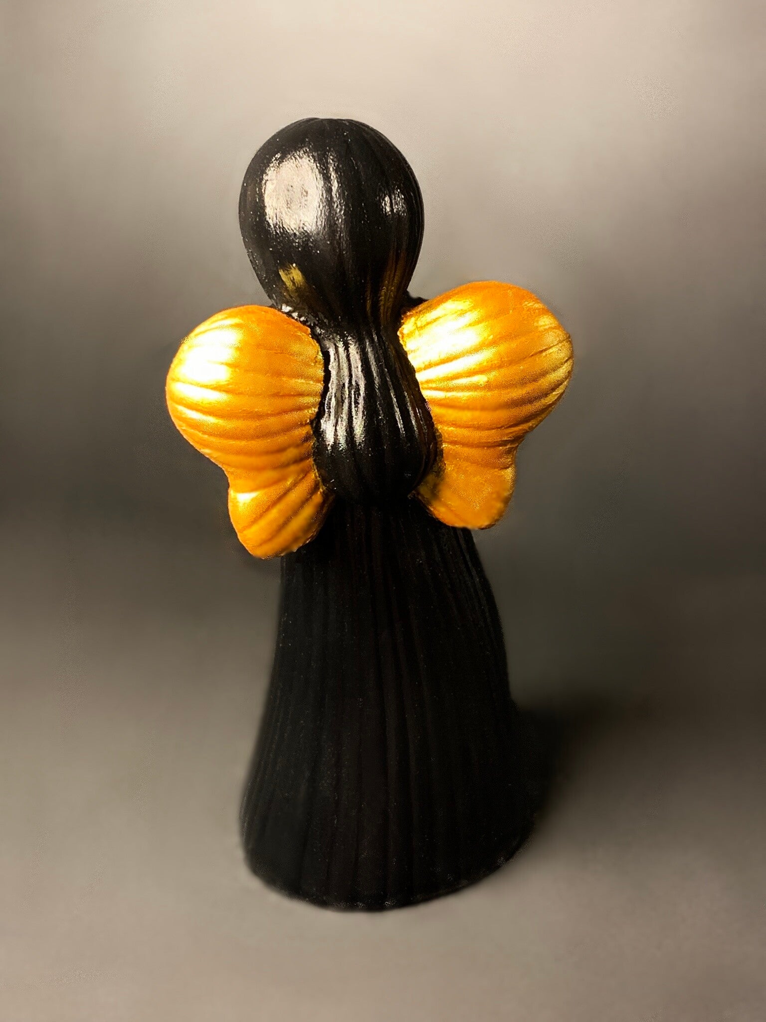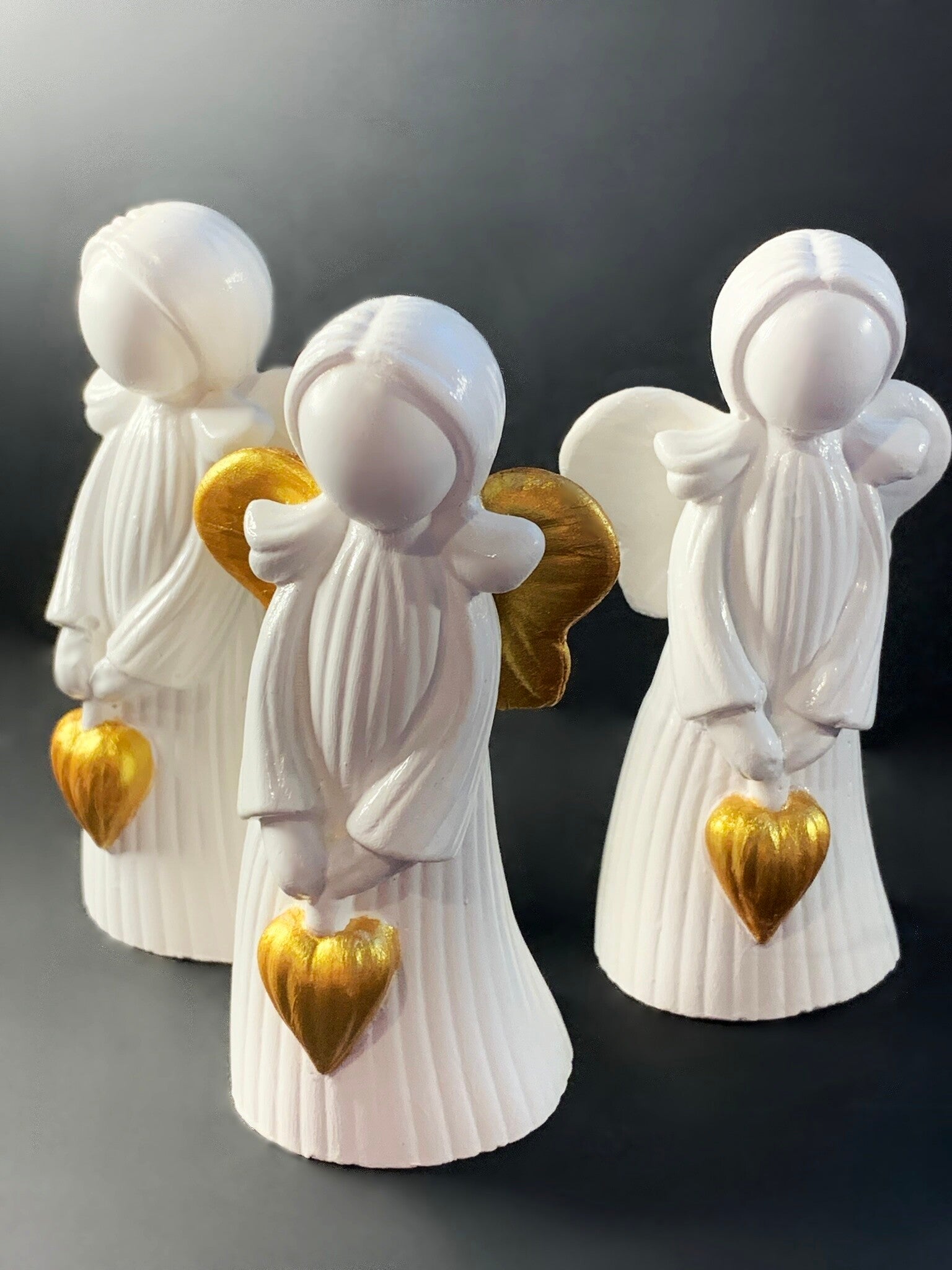 Each angel is lovingly handmade and carries a shimmering golden heart — a symbol of love and light. Available in black or white with optional golden wings, these elegant ornaments complement each other beautifully. Whether displayed together or gifted individually, they bring a touch of grace and warmth to your Christmas décor.