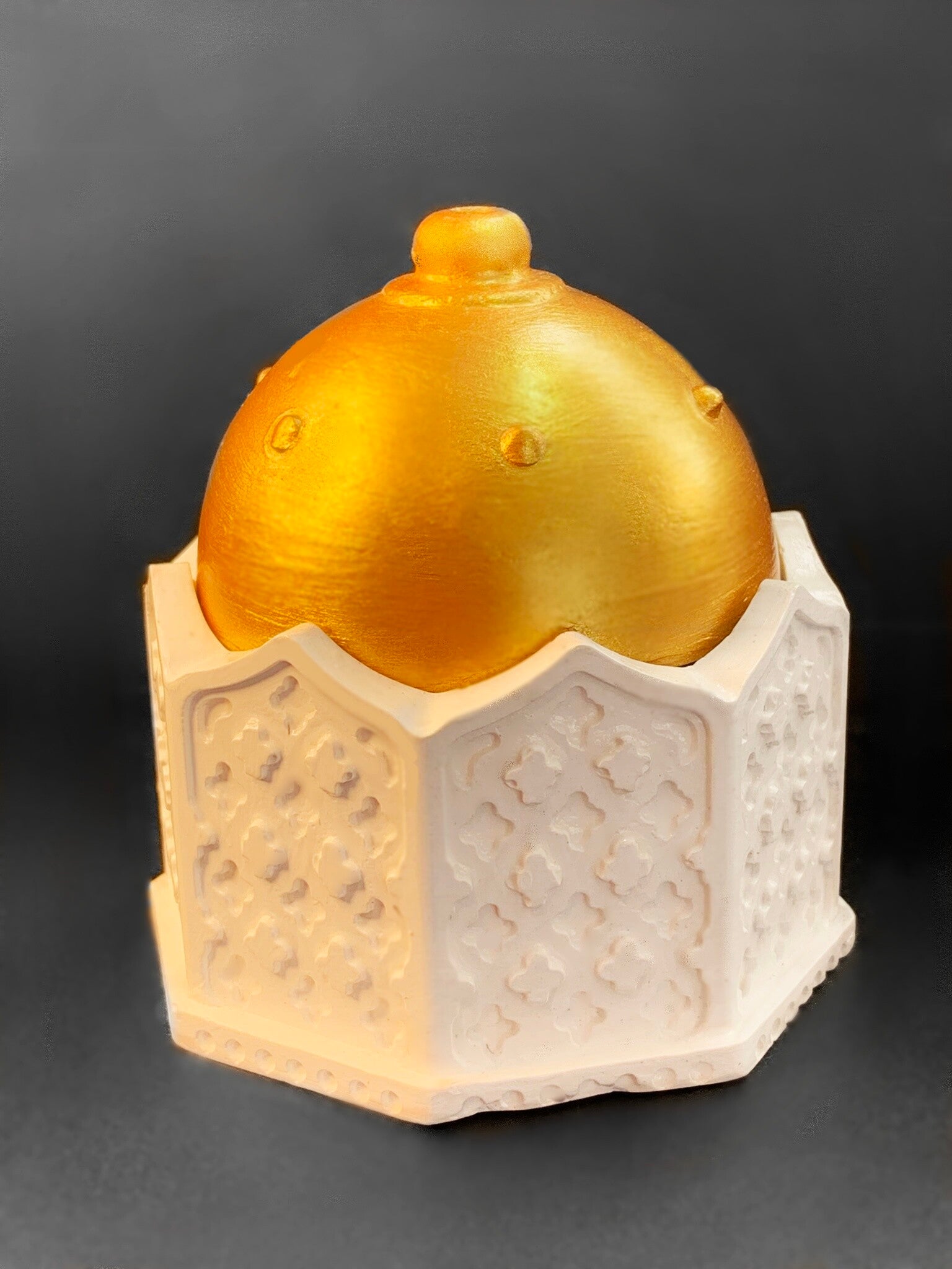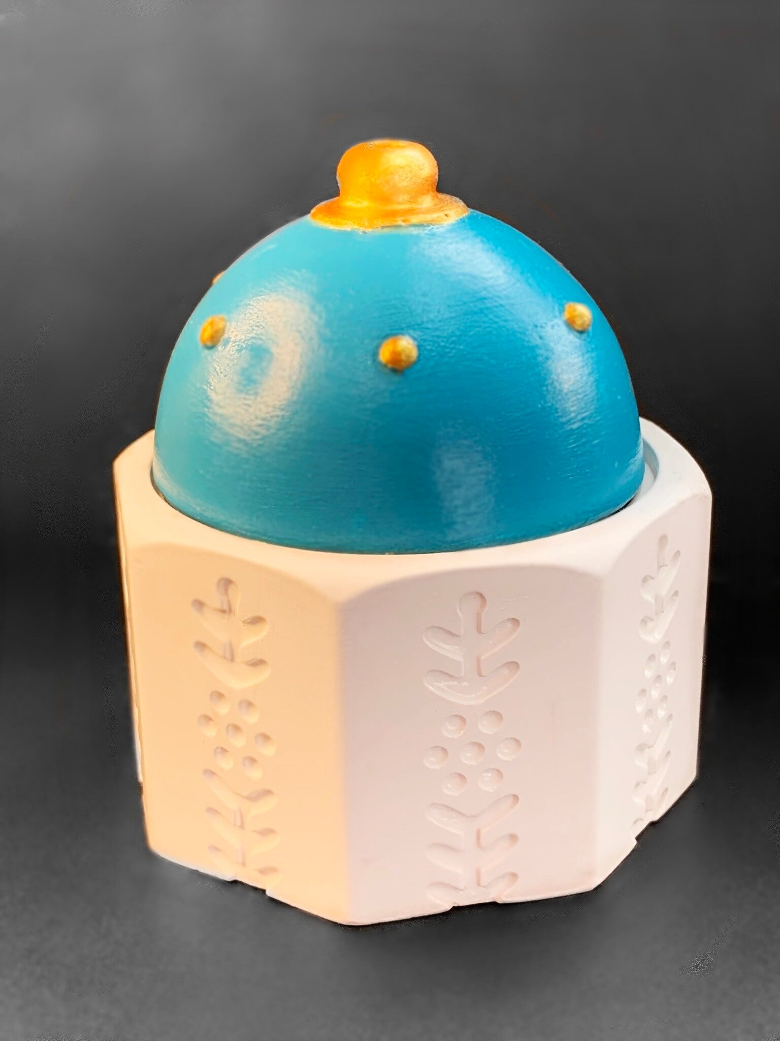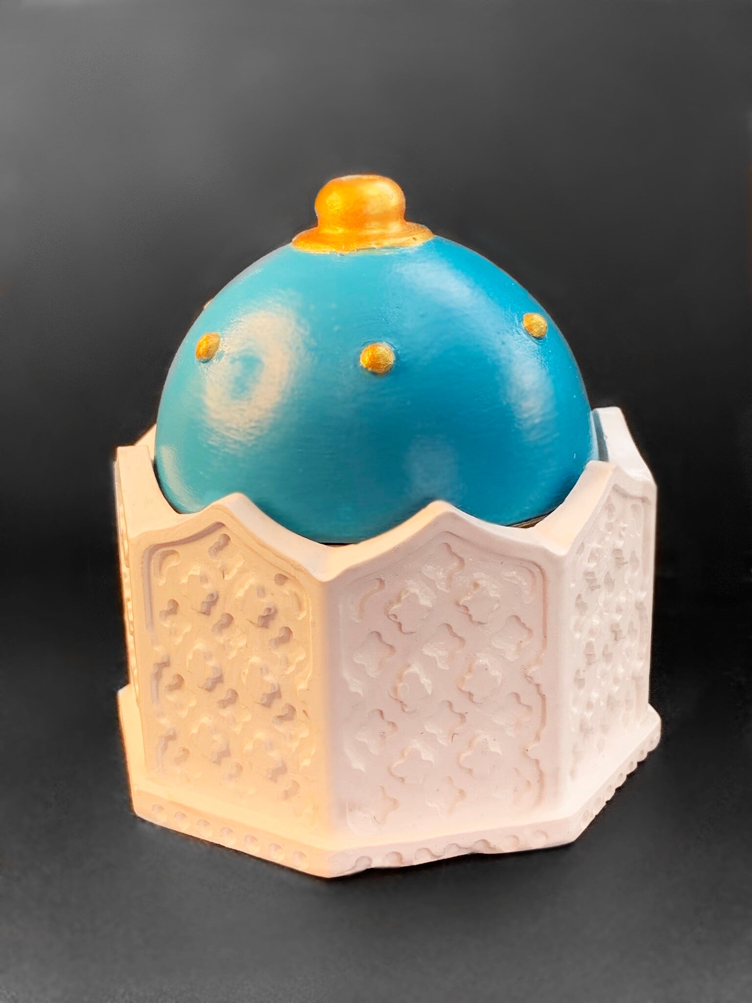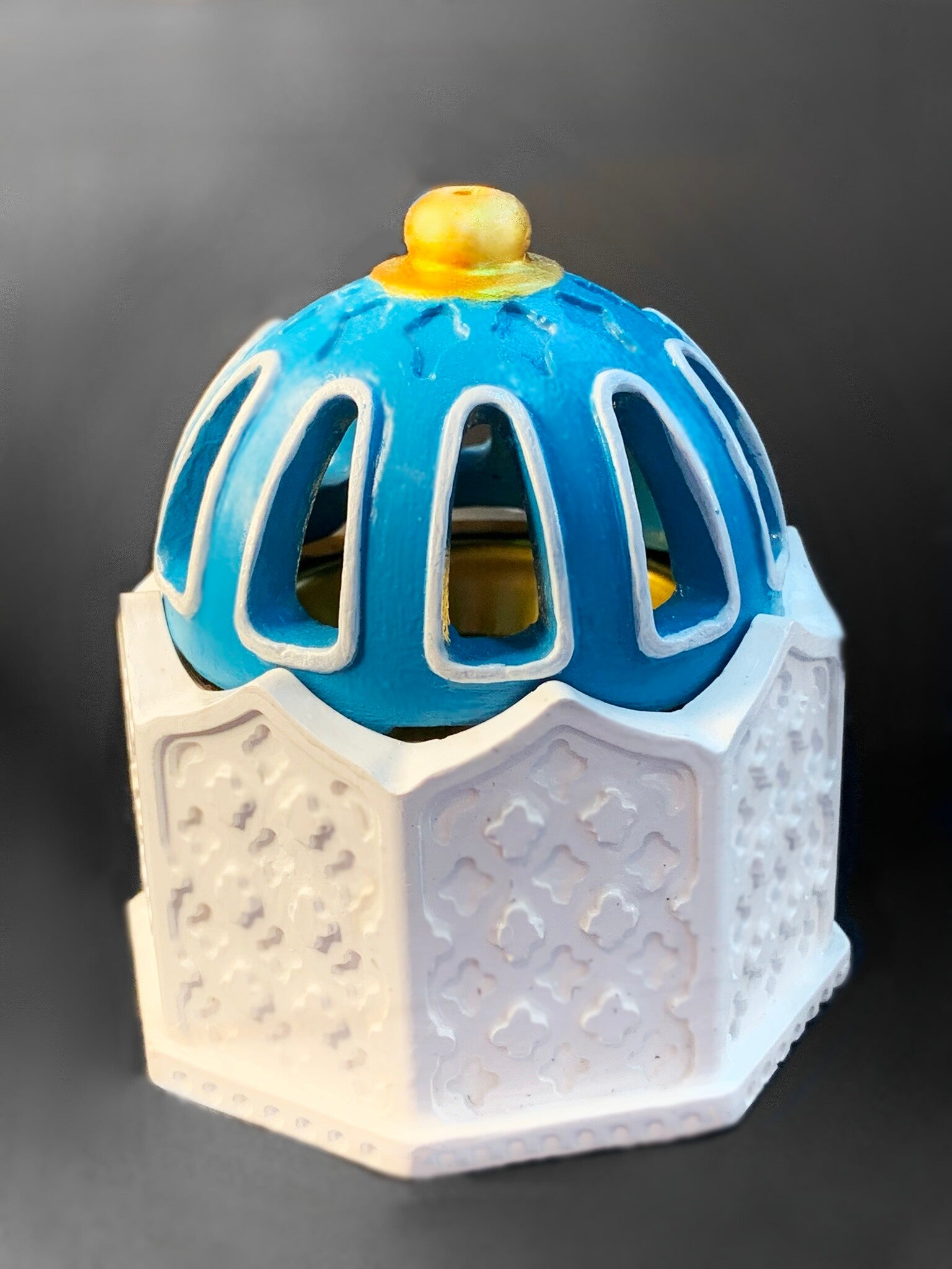 Crafted with precision and care, this mosque-shaped burner features a stunning architectural dome and base (available in various hand-painted finishes like gold, black, and serene pastels). It is ideal for moments of peaceful reflection, whether during prayer, the joyous spirit of Eid celebrations, or simply when you want to unwind and relax.
