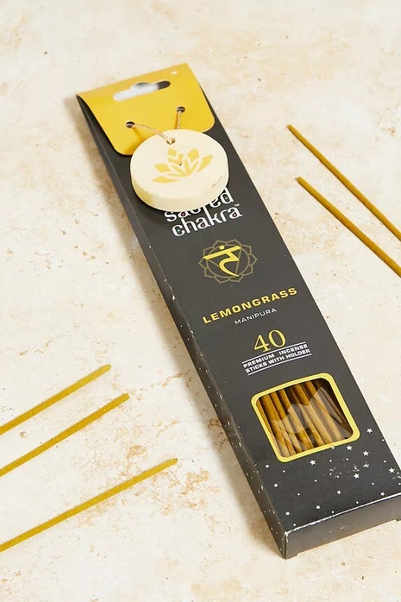 Each pack includes 40 hand-rolled incense sticks and a matching incense holder, accented with a coloured lotus that reflects the energy of the corresponding chakra.