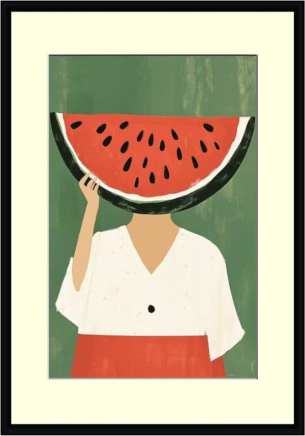 Bring a burst of colour and personality into your space with this creative “Watermelon Woman” illustration — a bold fusion of fashion, fun, and fruit-inspired flair.